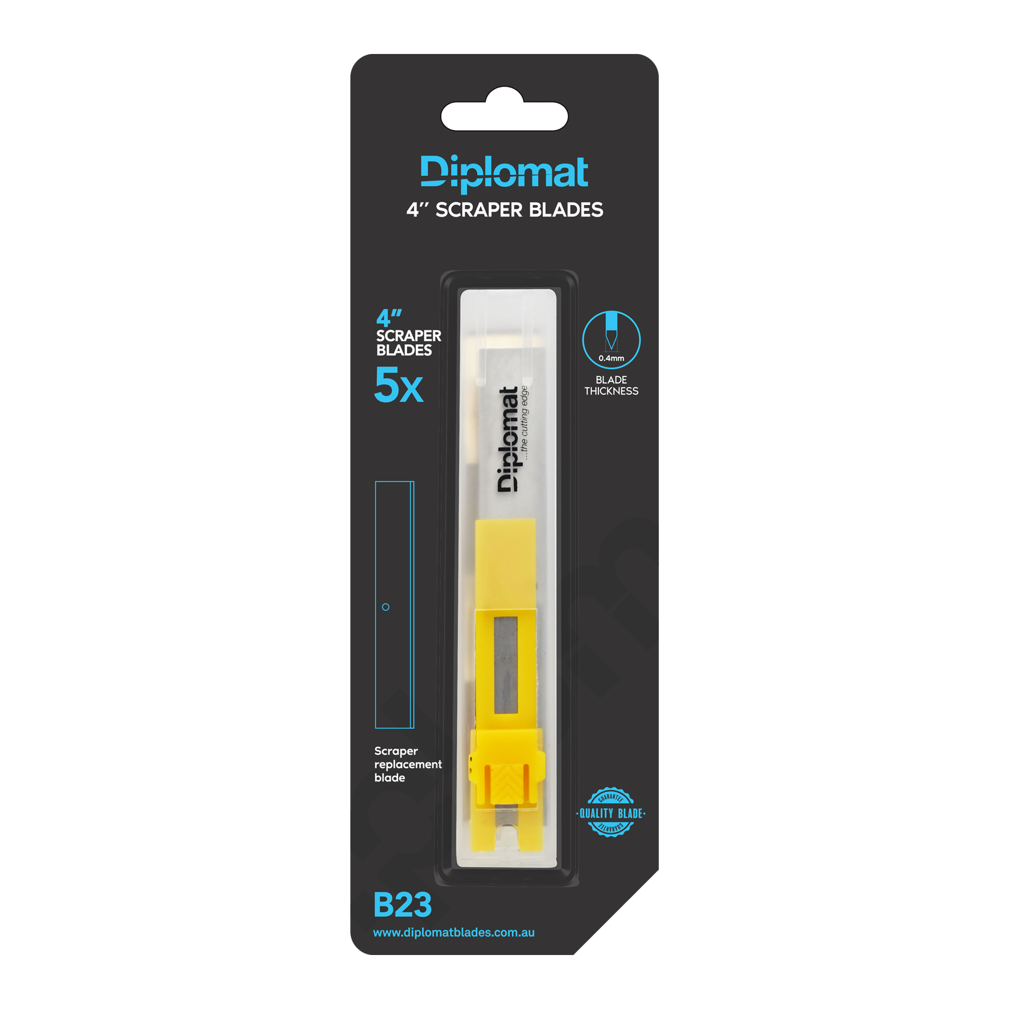 Diplomat B23 100 mm Scraper Blades - 5-Pack: Heavy-duty carbon-steel blades for long-handled scrapers. Designed for tough scraping tasks like removing paint, adhesives, and coatings. Sold in a convenient pack of five. Fits all 4" scrapers.