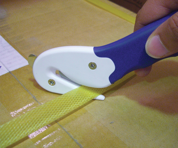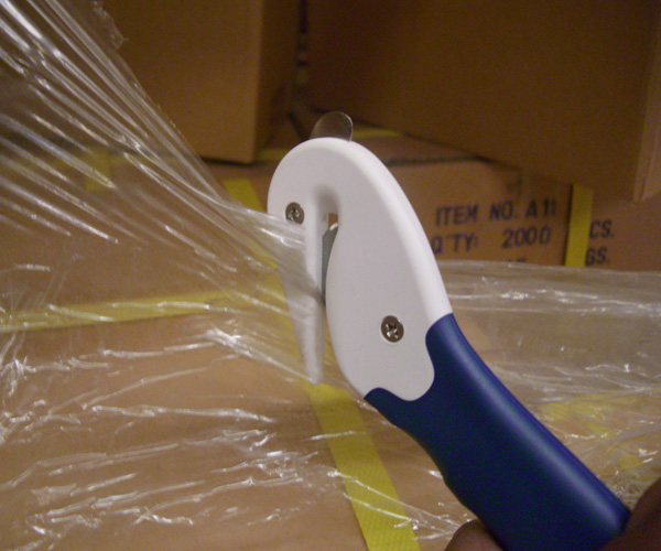 Multi purpose cutter designed for easy and safe cutting of shrink wrapped pallets, box strapping, bubble wrap, plastic sheeting and taped boxes. Non-slip rubber grip handle.
