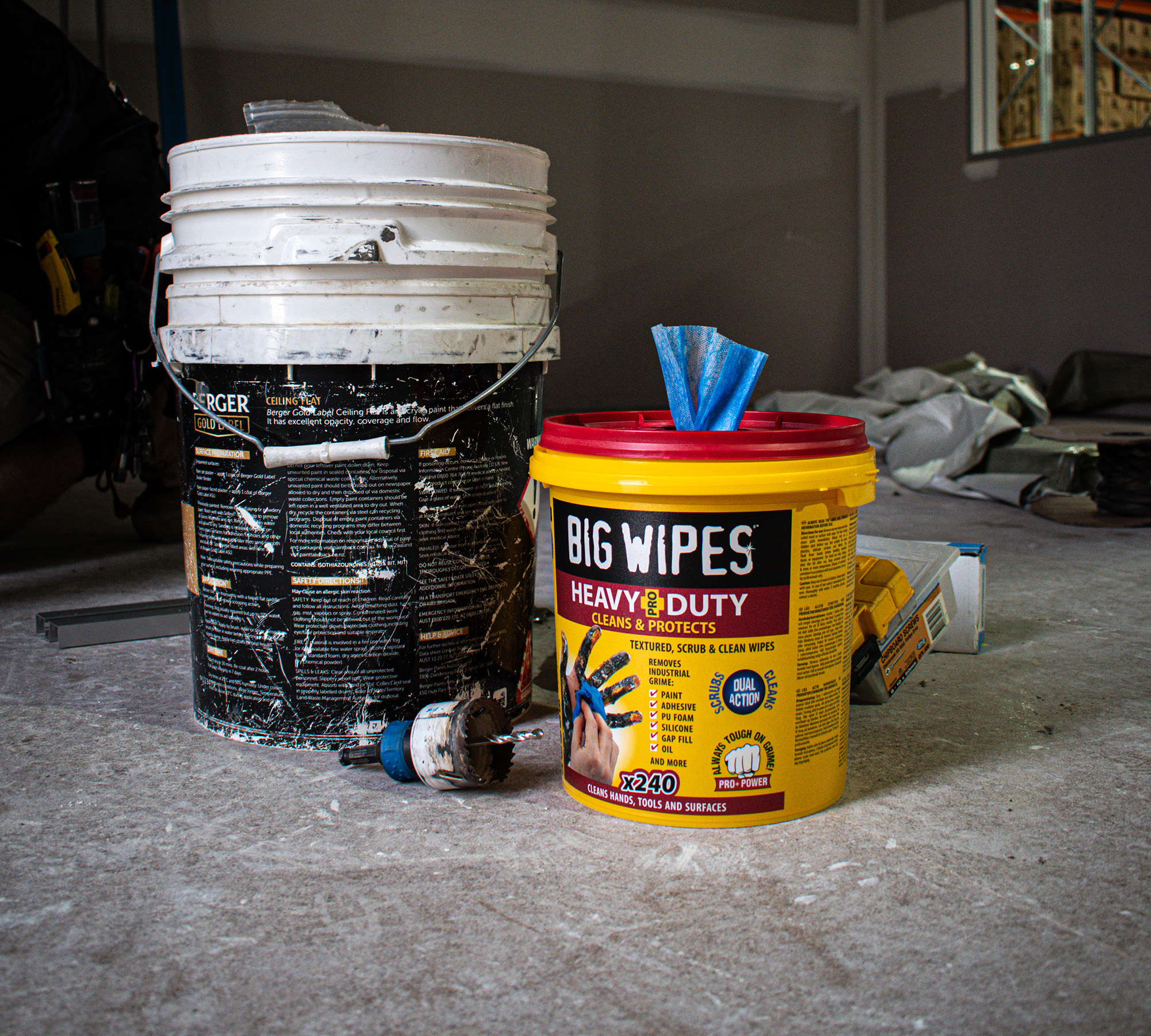 Big Wipes are the safer, faster and better wipe. The #1 heavy-duty industrial-strength wipe worldwide, removing more muck and grime than any other wipe - removes oil, grease, dirt, grime, PU foam, gap filler, silicone, paint, tar, bitumen and more.