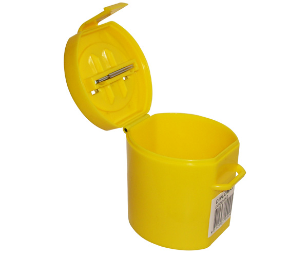 Diplomat A42 is a bright yellow, 0.25 L safety disposal container (blade snapper), enabling quick, low-pressure disposal of used snap-off blade segments-ideal for safer workplaces.