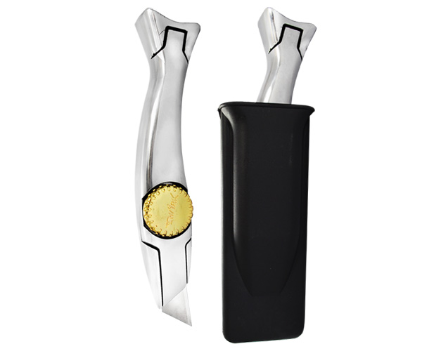 No.1 fixed utility knife designed for professionals. Ergonomic handle design to prevent hand and wrist fatigue. Strong aluminium body for durability. Easy blade change with a quick rotating wheel. Fits most standard utility, concave and hook blades. Includes hard plastic holster.