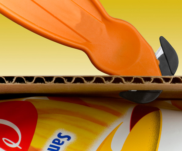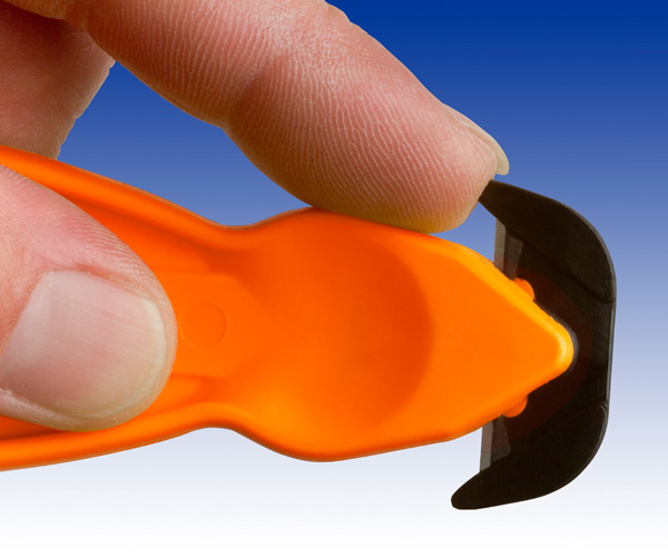 Recessed blade prevents risk of accidental contact with fingers. Large blade opening for cutting thicker cardboard. Won't damage packaged goods. Versatile, cuts cardboard, boxes, strapping, shrink wrap and bubble wrap. Lightweight-weighs 15 grams. Now with new tape slitter. Disposable. Made in USA