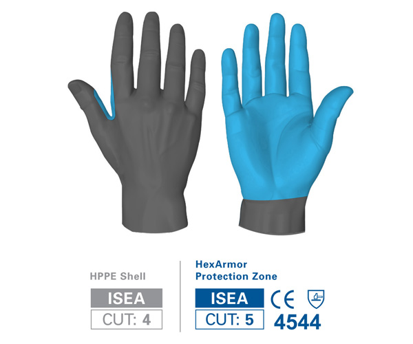 glass fiber blend, offering top-level flexibility and comfort with Level 4 cut protection on the back of hand