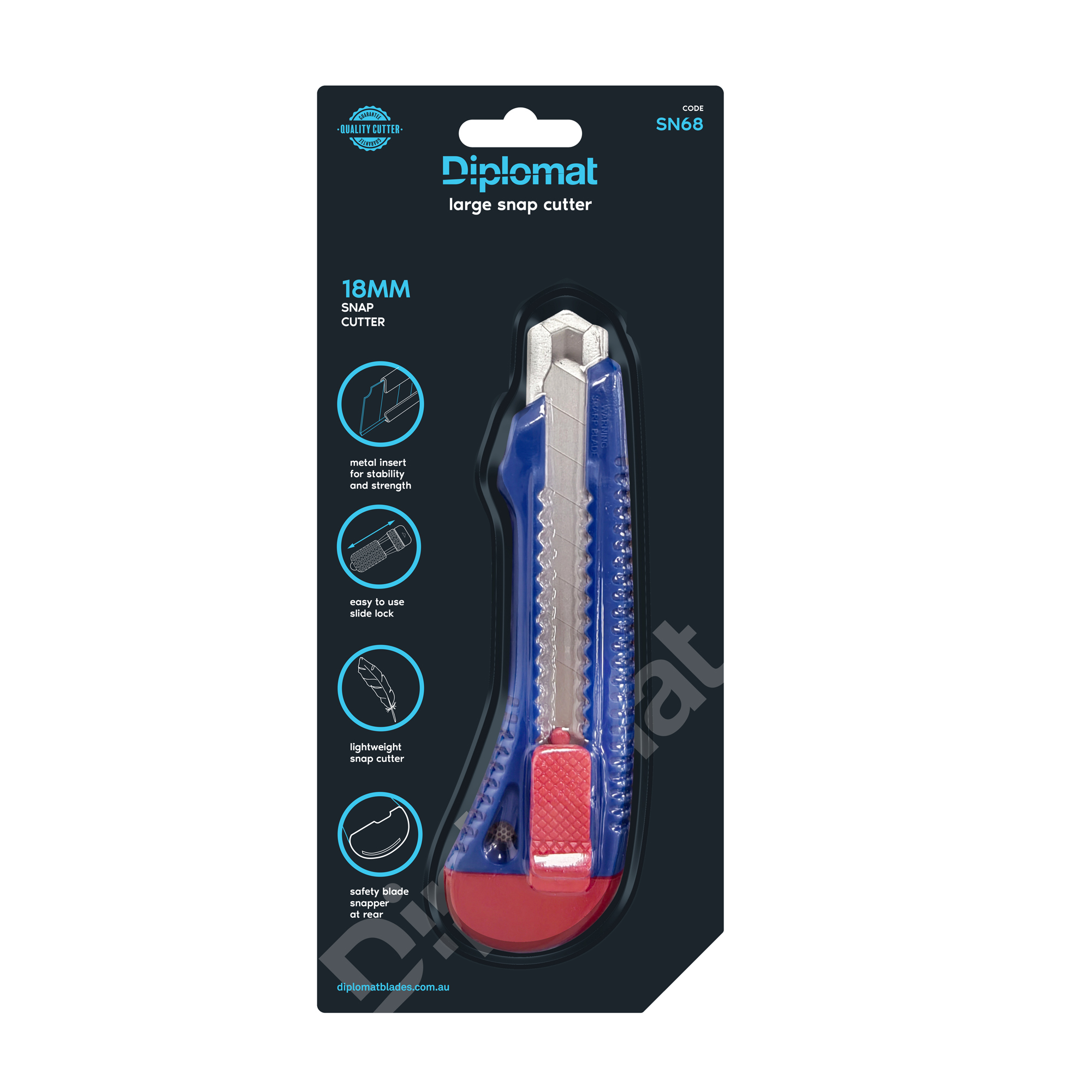 Heavy-Duty Snap Cutter with metal insert for stability & strength, easy to use slide lock, safety blade snapper at rear takes all large (18mm) snap blades.