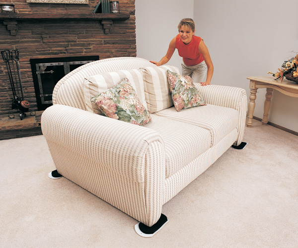 One set allows you to move all your heavy furniture and more! Simply tilt the object being moved, place a slide under each corner then push or pull the object with ease. Furniture is gripped by the 1/2" thick heavy duty EVA foam. The ultra smooth base has a built in dual spring action to apply upward pressure keeping the pad in place during movement. Remove when finished.