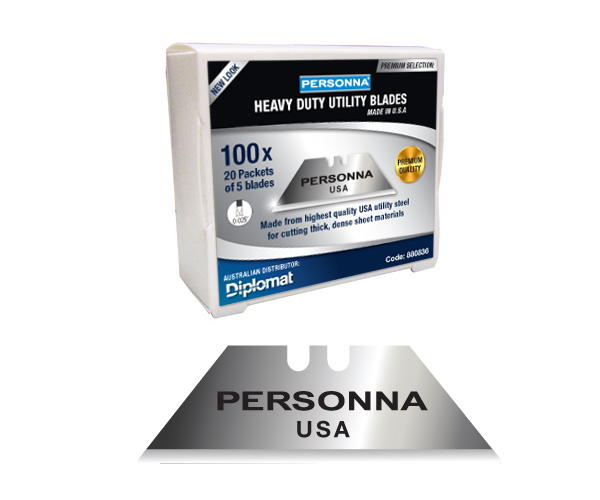 Diplomat A05P are extra-heavy-duty utility blades (approx. 60mm X 19mm X 0.63mm, 0.025" thick) made from carbon steel. Manufactured by Personna in the USA. Supplied in packet 100 blades. Ideal for most heavy-duty utility knives.