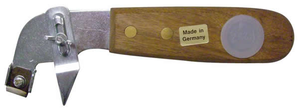 The Diplomat C61 Vinyl/Lino Knife is a German-made Bandle tool with a cherrywood handle and hook blade for precise cutting of vinyl and linoleum. Brass-riveted for strength, the blade is durable, re-sharpenable, and built for professional flooring work.