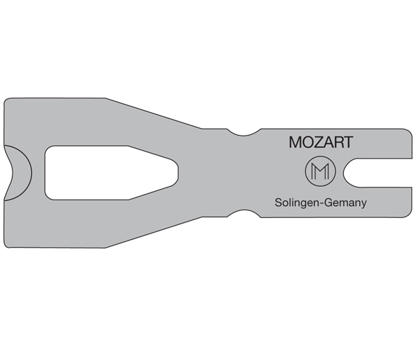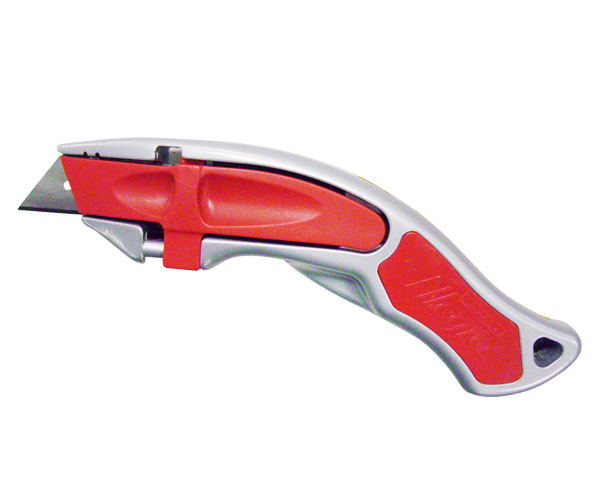 Mozart Allegro Utility Knife - German-made, ergonomically contoured cast body reduces wrist fatigue. Tool-free blade change in seconds, with in-handle storage and included holster. Accepts standard, hook, and concave blades.