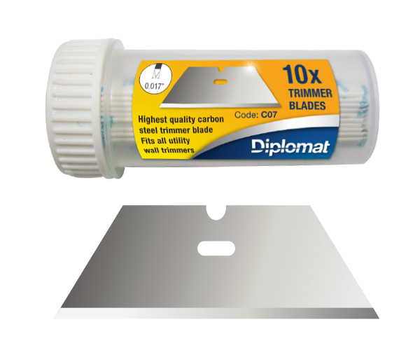 The Diplomat C19 is a German-made heavy-duty technical 3-hole blade. Crafted from 0.4mm carbon steel with a double edge, it delivers strength and precision. Designed to fit the Diplomat C27 red carpet cutter for clean, accurate cuts.