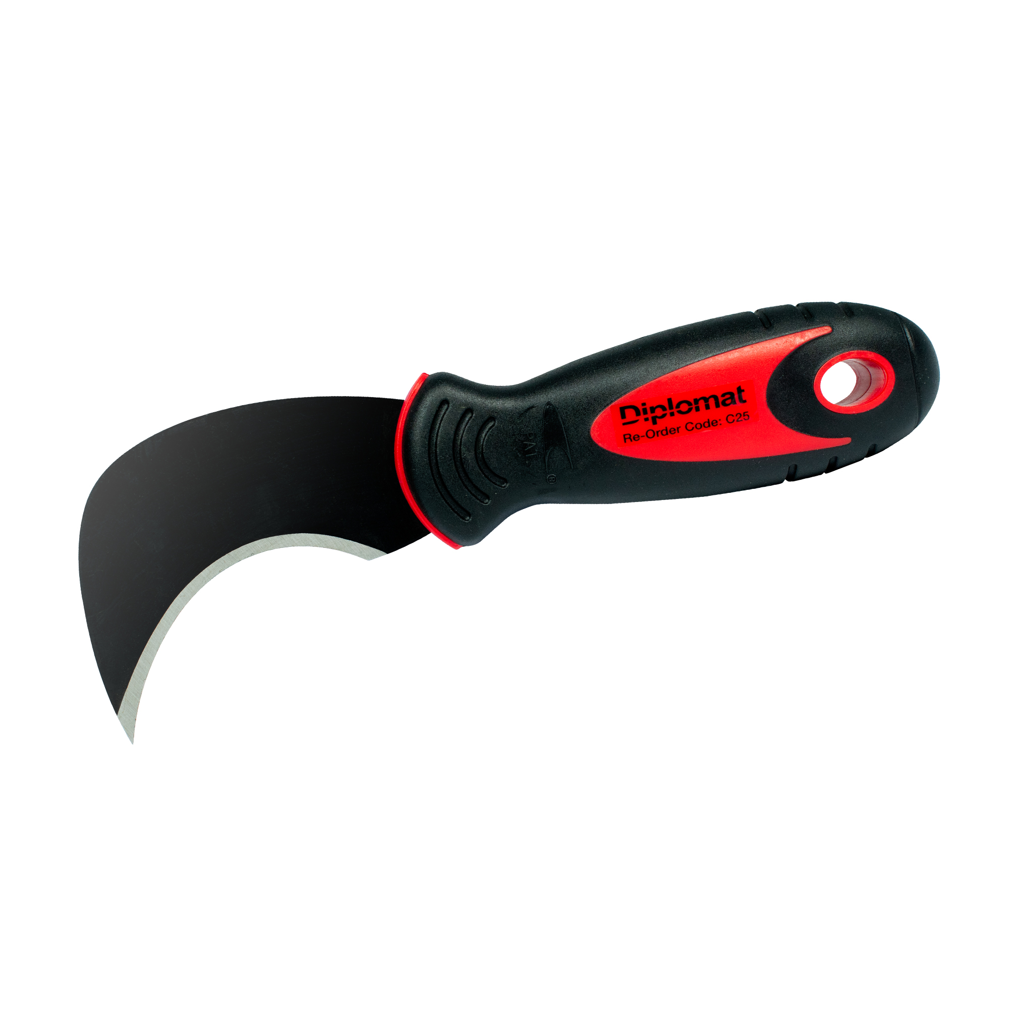 The Diplomat C25 Linoleum Knife features a curved SK-5 high-carbon steel blade with black oxide coating for durability. Fitted with a sturdy hardwood handle, it's ideal for cutting vinyl, linoleum, and flooring materials with precision.