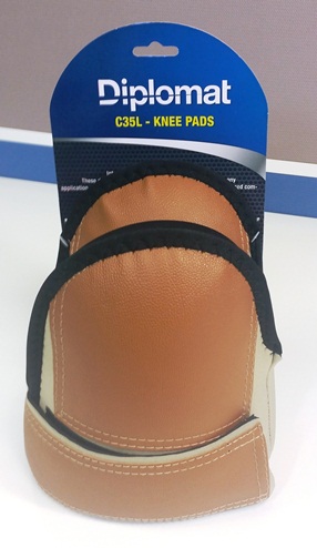 Diplomat C35L Knee Pads feature a durable leather outer shield, washable nylon body, and cushioned EVA core with adjustable Velcro strap-designed to reduce strain and protect knees on hard surfaces. Sold individually for precision fit.