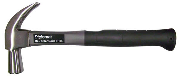 Diplomat H24 Claw Hammer with durable fiberglass handle reduces vibration and provides comfort. Balanced head design for effective striking, nail driving, and prying. A reliable tool for professional and general use.